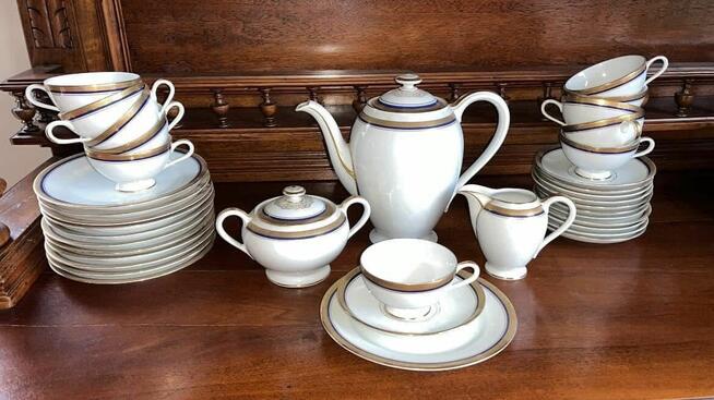Serwis kawa, Rosenthal. Syg. Thomas z 1933 r. Piękna, śnieżna porcelana ze złotym, wytłaczanym - brabanckim - i ...